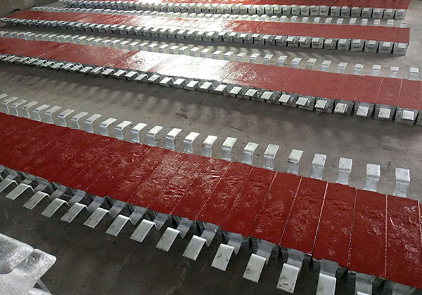 我公司按照GB/T 4948-2002研發(fā)生產的鋁合金犧牲陽極(簡稱:鋁陽極)適于海水介質中的船舶、機械設備、壓載水艙、儲罐內壁、濱海設施、海底管道、碼頭鋼樁、海洋平臺、電纜等設施金屬防腐蝕的陰極保護。