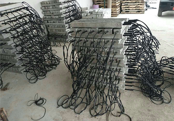 根據(jù)電化學原理,從鎂合金陽極材料體上通過土壤、水等電解質(zhì)向被保護體如鋼質(zhì)結(jié)構(gòu)提供陰極電流,使被保護的鋼質(zhì)結(jié)構(gòu)進行陰極化,實現(xiàn)陰極保護。隨著電流的不斷流動,陽極材料不斷消耗掉。這就是犧牲陽極名稱的由來?!〕商祖V犧牲陽極,由鎂犧牲陽極錠1支,一根VV-10㎜2電纜3米,填包料50kg,棉布口袋1條,塑料編織袋1條組成。即棉布口袋內(nèi)有鎂犧牲陽極錠1支其鐵芯上焊VV-10㎜2電纜3米1根,焊接處做絕緣處理,并套有熱縮管。鎂犧牲陽極錠周圍均勻分布50kg填包料。棉布口袋外套塑料編織袋1條。